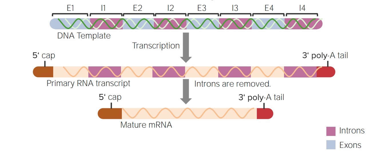 Las modificaciones postranscripcionales son procesos que facilitan la generación de ácido ribonucleico (ARN) maduro y funcional. Estos mecanismos reguladores de rápida respuesta permiten que se produzcan diferentes proteínas a partir de un mismo gen y actúan como reguladores del fenotipo y de la tasa de proliferación. Cuando se produce inicialmente un transcrito de ARN en una célula eucarionte, se considera un pre-ARNm y se debe procesar para obtener un ARN mensajero (ARNm). El ARN pre-mensajero (ARNm), llamado ARN heterogéneo nuclear (ARNhn), se modifica añadiendo una caperuza de 7-metilguanosina en 5' y una cola de poli-A 3' para su estabilidad y protección.